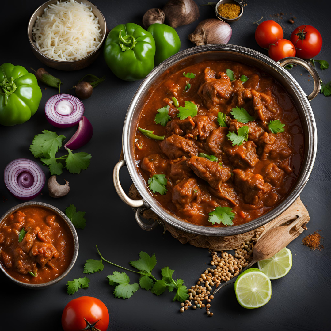 Cordero cocinado lentamente con tomate, cebolla, pimiento verde y especias